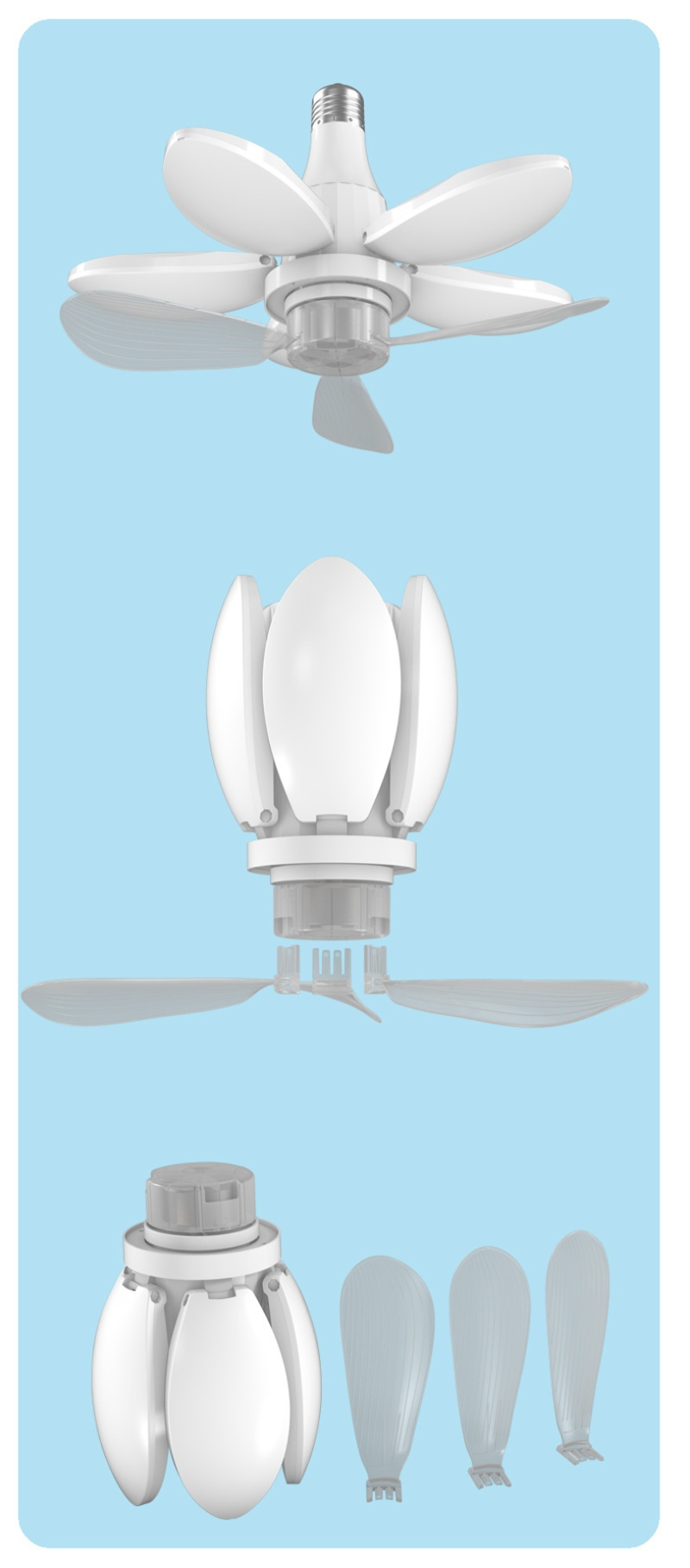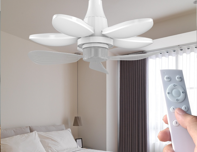 Folding lighting fixtures with fans
